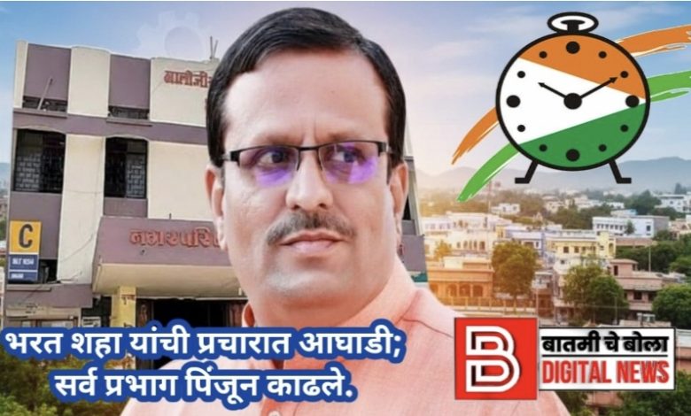 - इंदापूर नगरपरिषदेच्या निवडणुकीत राष्ट्रवादी काँग्रेस (अजित पवार गट) चे नगराध्यक्ष पदाचे उमेदवार भरतशेठ शहा यांनी घर-घर प्रचार मोहीमेत प्रचंड आघाडी घेतली आहे. इंदापूर शहरातील दहा ही प्रभागांना पिंजून काढत, प्रत्येक नागरिकांच्या दारात जाऊन संवाद साधण्याचा त्यांचा उपक्रम शहरात चर्चेचा विषय बनला आहे.